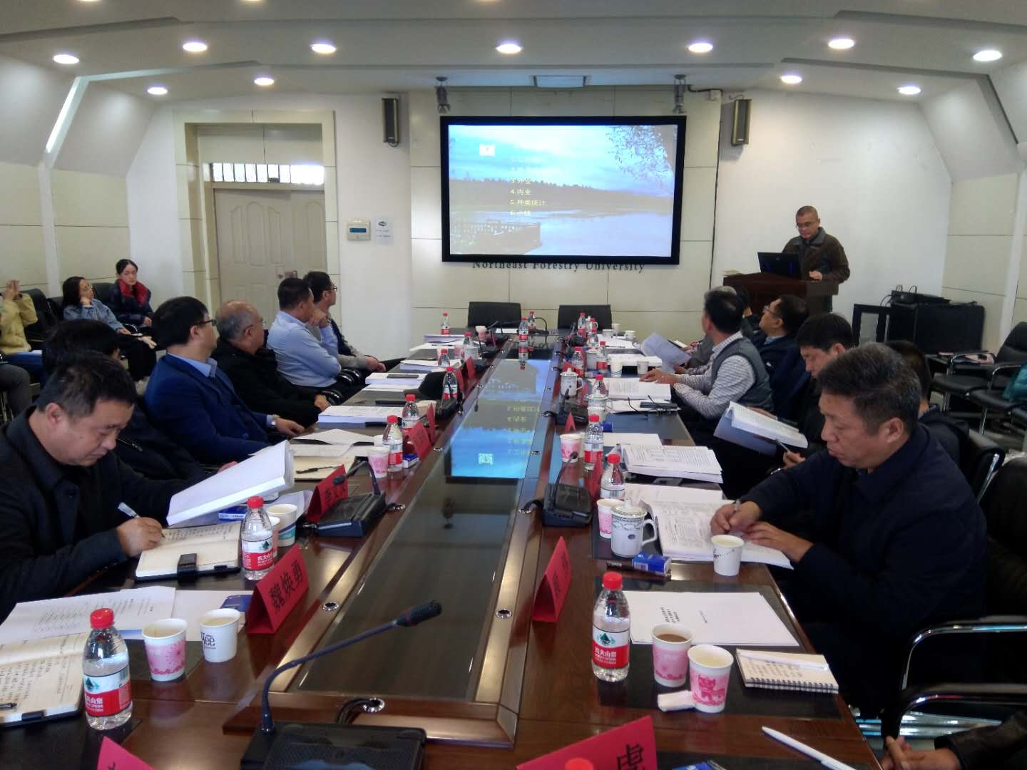 验收会议由林学院副院长张国财教授主持。项目总负责人孙龙院长首先详细介绍了项目总体情况和立项背景。验收专家组组长宋福强教授主持专家论证验收环节,专家组分别听取了植物、动物、昆虫、真菌、自然地理及资源动态分析、森林火险评估与保护区管理与评价等分项负责人的总结报告,认真审阅了项目组提交的验收材料,就有关问题进行了质询,提出了指导建议。经认真讨论,专家组对项目的完成情况和所取得的研究成果表示了肯定,一致认为本次科考项目完成了任务书所规定的任务,达到了考核指标,提供材料齐全,经费使用合理,同意通过项目验收。项目管理单位关大鹏局长代表凉水自然保护区向项目组的辛勤付出表示衷心的感谢,表示要充分利用好本次综合科考的各项成果,作为保护区制定发展规划和保护管理决策的科学依据,更好的促进保护区的科学可持续发展。