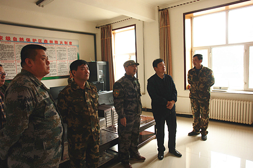 郑怀玉同志一行首先检查了重点火险区检查岗哨设置和野外火源管控工作。随后,检阅保护区快速扑火队,对一线扑火队员表示亲切的慰问。在防火指挥中心检查了扑火机具、车辆等防火物资储备情况,查阅防火内业资料,并详细询问保护区森林防火红外视频预警监控系统运行状况和监测能力。管理局书记刘吉春向检查组详细汇报了保护区春季森林防火及资源保护工作开展情况。