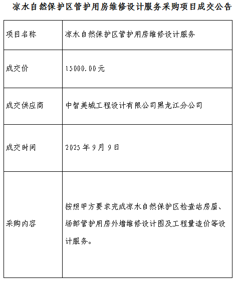 凉水自然保护区管护用房维修设计服务采购项目成交公告