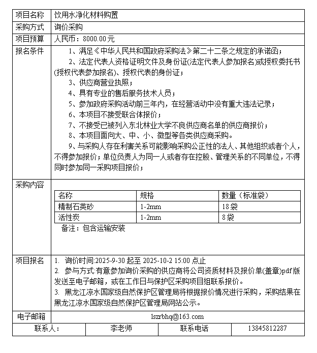 饮用水净化材料购置公告