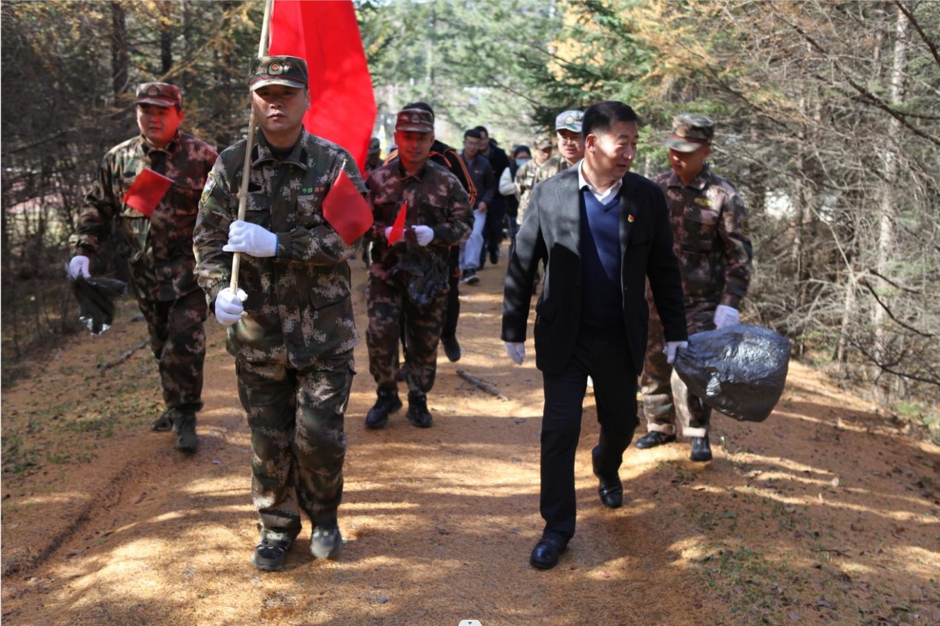 为了增加活动的趣味性,党员干部和职工群众在党旗的引领下,还一起徒步参与了森林防火巡护。登山途中,同志们一边感受着原始森林色彩斑斓的秋日景色,一边交流工作和生活上的感受,看到路边有废弃物,大家都抢着去捡;年轻同志找到问题线索难掩兴奋之情,老同志看着莽莽林海感叹时光飞逝,一路上欢声笑语,其乐融融。