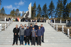 在参观完张子良纪念馆之后,党支部一行11人来到带岭抗日英烈纪念园祭奠抗日英烈,向英烈敬献鲜花并鞠躬,缅怀历史,不忘初心。带岭抗日英烈纪念于2015年建成,既是革命老区的红色纪念标志,也是革命传统教育基地。带岭曾经是小兴安岭抗日斗争的中心区,在各个不同的历史时期都沉淀着丰厚的文化底蕴,在这块热土上曾经发生过大大小小的战役百余次,消灭日本关东军上千人,给日本侵略者以沉痛打击。