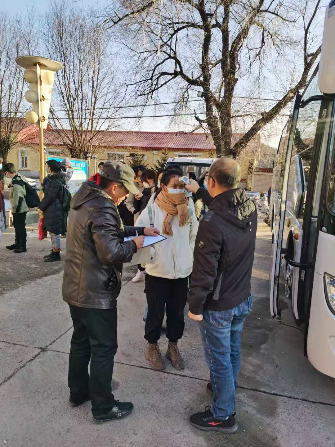 为严防疫情输入,林场党员分组开展志愿服务,一组党员先行来到场部,配合林场防疫员,对食堂、学生公寓等区域,开展每日环境消杀工作,党员们仔细排查各个区域的卫生死角,用酒精、84消毒液对公共区域的走廊、门把手、楼梯扶手进行了全面消杀;二组党员志愿者来到车站,迎接来场实习师生,对上车人员信息进行登记及体温测量,并开展防疫宣传工作,随后跟随班车一同前往林场场部。