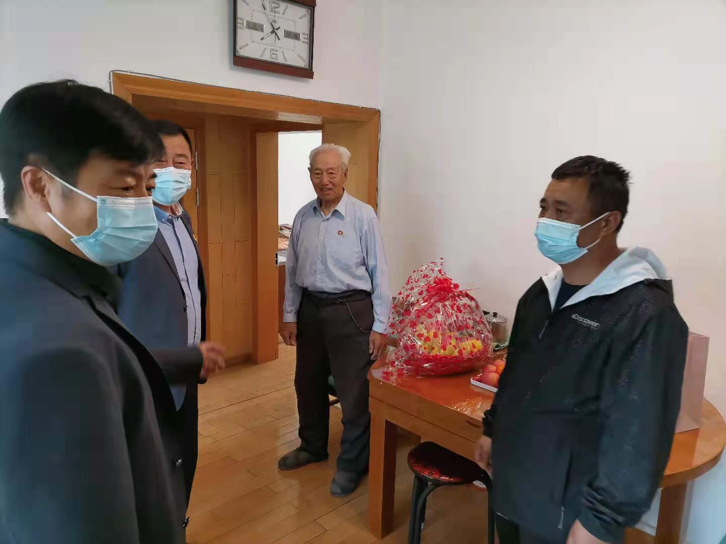 林场直属党支部现有退休党员7人,其中2人已超过80岁高龄且行动不便,考虑到实际情况,5月26日林场直属党支部书记带队,领导班子成员购买了新鲜水果等慰问品到两位老党员家中看望并汇报林场近期工作,希望老党员同志保重身体,持续关注林场发展,为林场发展建言献策,两位老党员对党组织的关怀表示感谢,对林场领导班子的拜访表示欢迎,对林场没有忘记他们表示欣慰。