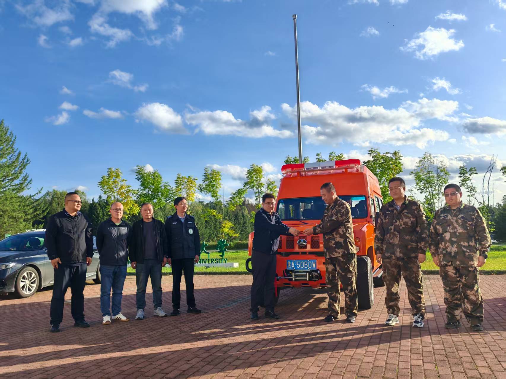 会后,在保护区林政防火中心完成了森林防火运兵车交接。新购置森林防火运兵车的投入使用,将促进保护区森防队伍能快速出动人力并兼顾装备输送,进一步提高森林防灭火快速反应能力,实现森林火灾扑救“打早、打小、打了”,有效提升保护森林资源和维护生态安全的能力。