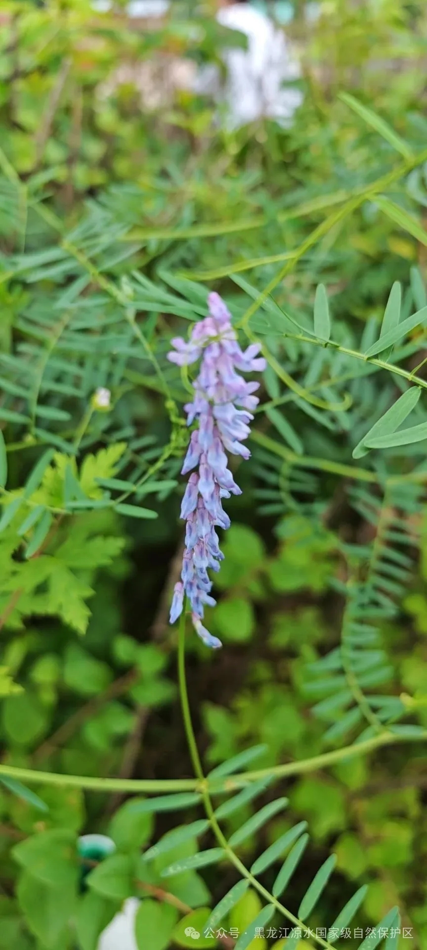 北野豌豆攀附在灌木上,它的叶轴顶端卷须短缩为短尖头,不似豌豆攀援,却将紫红的花串挂满枝头。一串串,一簇簇,在风中摇曳,仿佛紫色的风铃,奏响着夏日田野的欢歌。